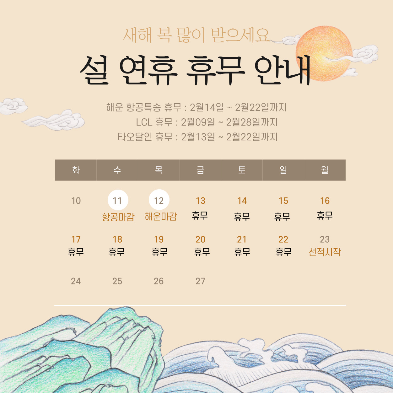 ▶해운특송 휴무 : 2월14일 ~ 2월22일까지