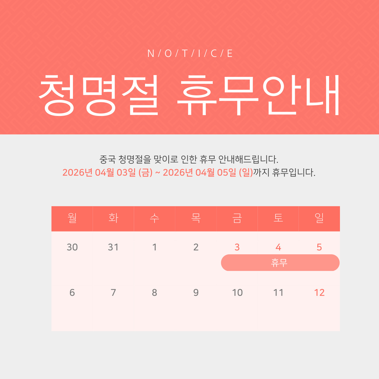 중국 청명절 휴무 및 배송 안내 올려드립니다