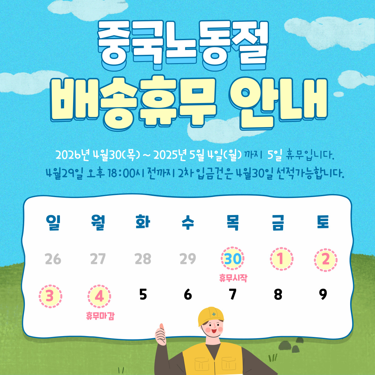 ▶타오달인 휴무 : 04월 30일~05월 04일